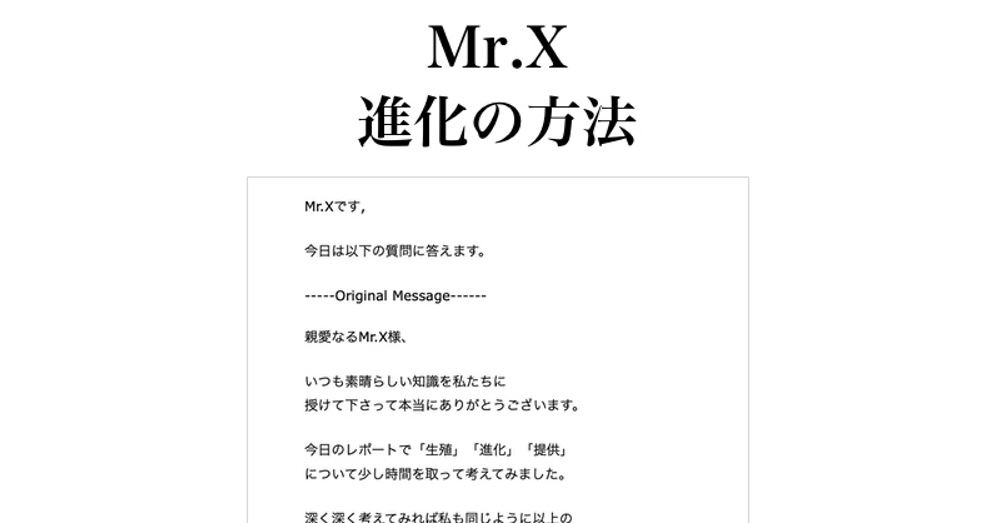 この記事では、Mr.Xの進化の方法レポートについて、学べる内容やテーマについてまとめてみました。