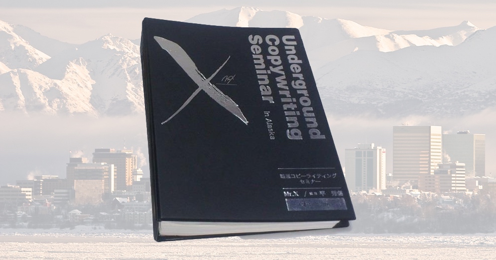 2006年アラスカで開催されたMr.Xによるコピーライティングのスキルを向上させる為のマインドセット、テクニックなど、“Mr.Xの10つ教え”が語られた暗黒コピーライティング アラスカセミナーです。